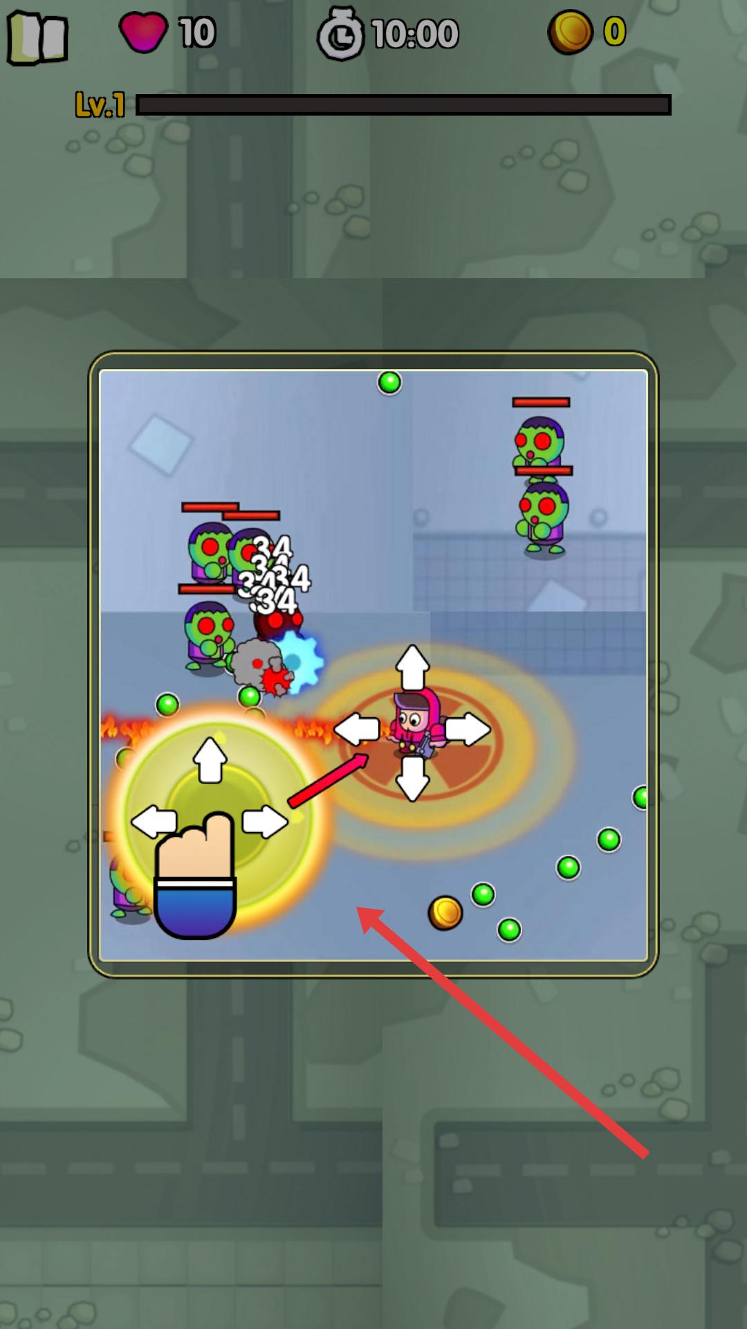 2、武器装备完成后,进入战斗场景,通过屏幕上的虚拟摇杆控制角色移动方向,让角色在场景中灵活走位,避开敌人发起的各类攻击。