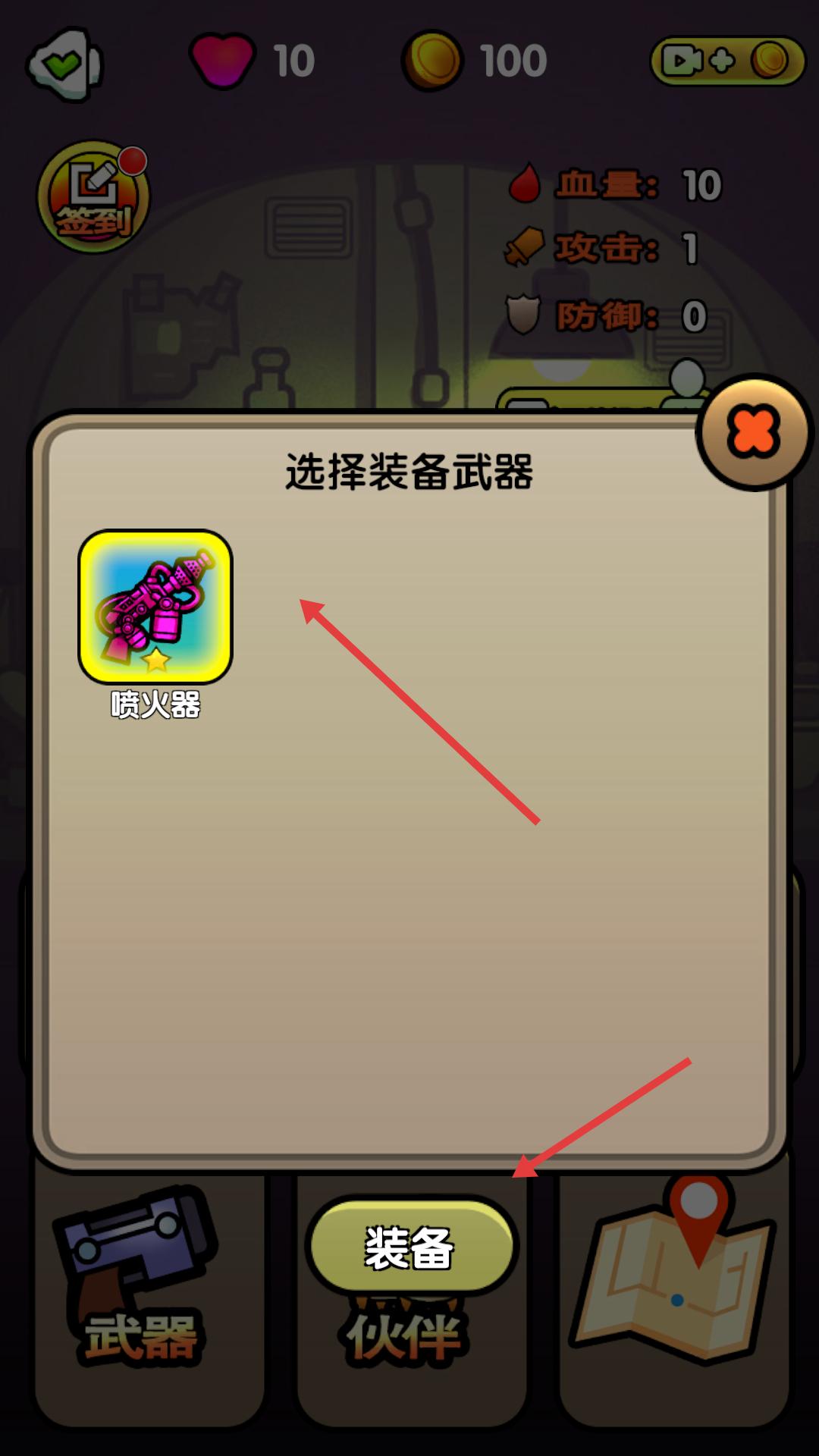 1、在武器选择界面浏览各类武器,挑选适合当前战斗的装备,点击装备按钮,将选中的武器配备到角色身上,为后续战斗做准备。